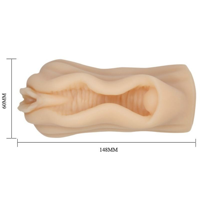 Mini masturbatore maschile con labbra vaginali e design del clitoride dal tocco realistico, come se fosse vera pelle e con un tunnel strutturato per un39esperienza quasi reale.