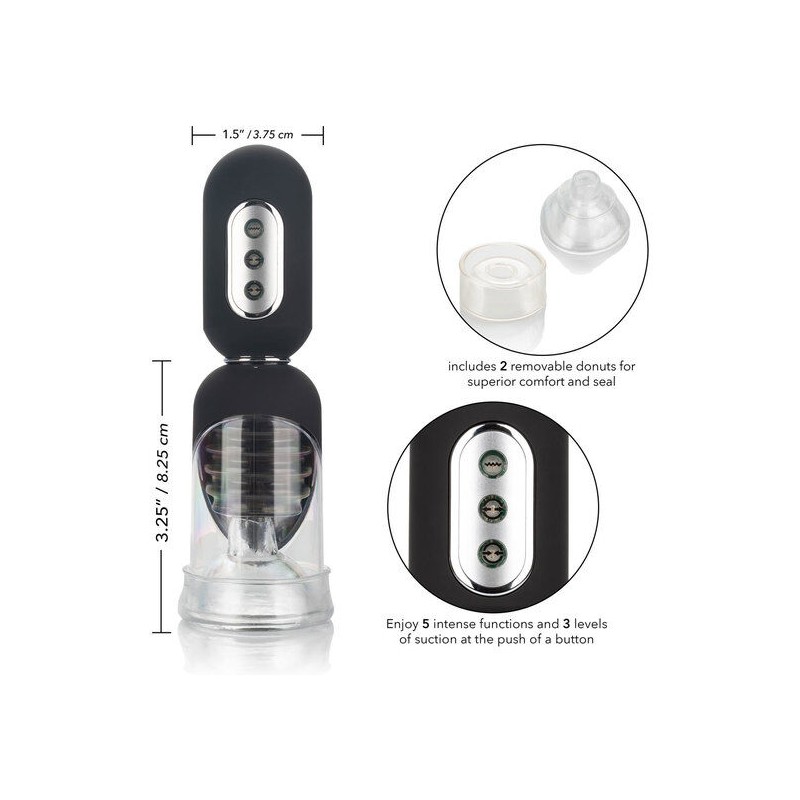 Questa pompa completamente automatica e ad alta tecnologia offre 3 livelli di aspirazione intensa, 5 funzioni di vibrazione e uno smorzatore di vibrazioni per risultati davvero esplosivi.