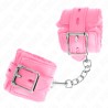 KINK - POLSINI IMBOTTITI IN PELLICCIA CON FORI QUADRI ROSA E CINTURA ROSA REGOLABILE 17-29 CM X 6 CM